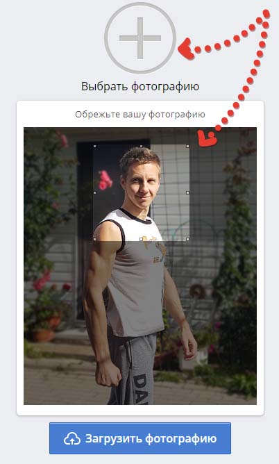 Вернитесь на туже страницу профиля и теперь увидите кнопку "Установить фото". Нажмите на нее, затем на "+", выберите вашу фотографию с компьютера, обрежьте ее в редакторе прямо на сайте и кликните на "Загрузить фотографию" и еще раз сохраните профиль.