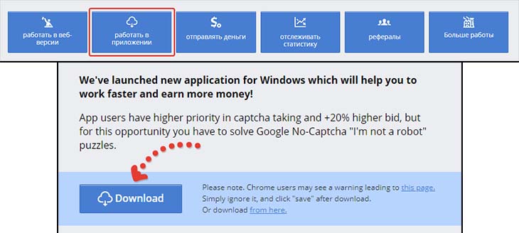Работая через программу для компьютера вам будут доступны только обычные капчи, рекапчи и fun-captcha, вы не сможете получать задания из фабрик. Зато приоритет при работе с программой повышается (об этом сказано на самом сайте).