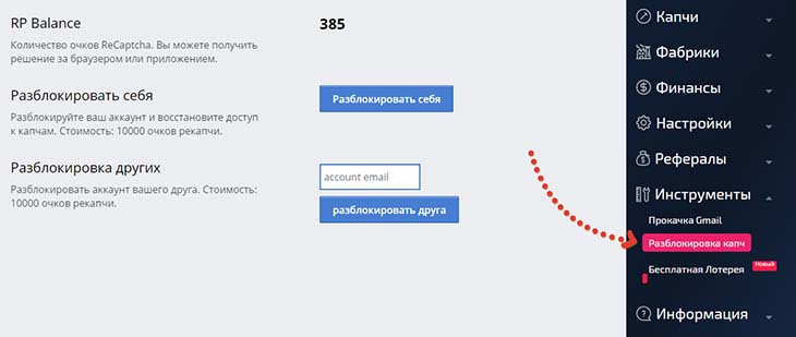 Очки ReCaptcha (в сервисе чаще обозначаются чаще как RP) - начисляются по одному за решение каждой рекапчи и позволяют выполнять такие полезные действия в аккаунте, как, например, разблокировку аккаунта за нарушение, удаление ошибочных капч, чтобы снизить риск блокировки (об ошибках поговорим ниже).
